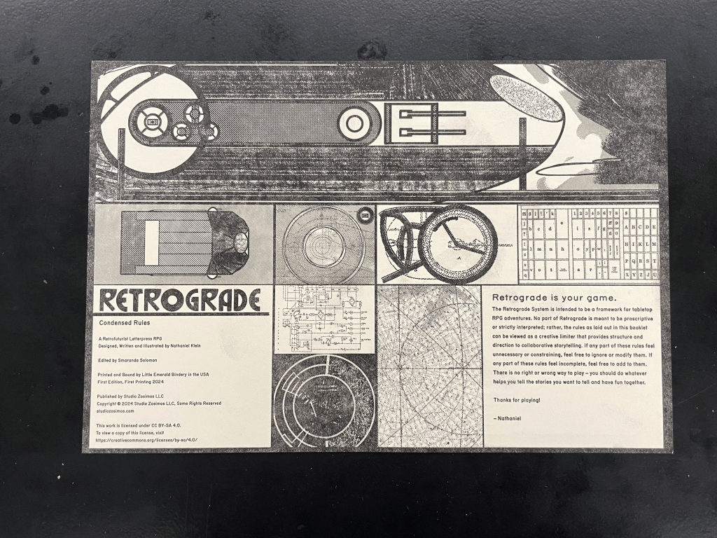 Right now, I’m reimagining the Retrograde system for The Broken Seal, a science-fantasy RPG that will combine creative elements of keepsake games like mapmaking and bookbinding with the kind of OSR-inspired adventuring mechanics Retrograde offers. The Broken Seal is still in early pre-production, but it’s likely to materialize as some kind of hex-crawl, which I think Retrograde’s skill system will work great for – rather than it being a desperate race against a ticking clock, it will become a cycle of adventure and rest. How far can you venture in a day before you run out of energy and resources? After an exhausting encounter, can you press onward to make it to the next town’s inn, or do you have to camp for the night and take what rest you can? I think the cycle of adventuring and recuperating here will be a great use of the Retrograde system my current adventures don’t fully explore, and the recuperation part of the equation will be a great opportunity for some of the creative keepsake elements to come in.